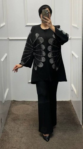کت و شلوار زنانه نگین کاری شده مدل کرشمهناموجود