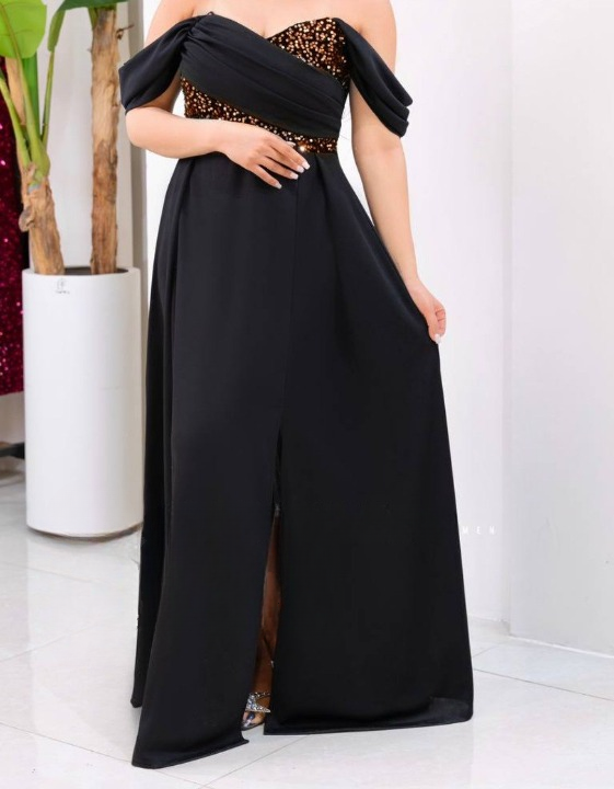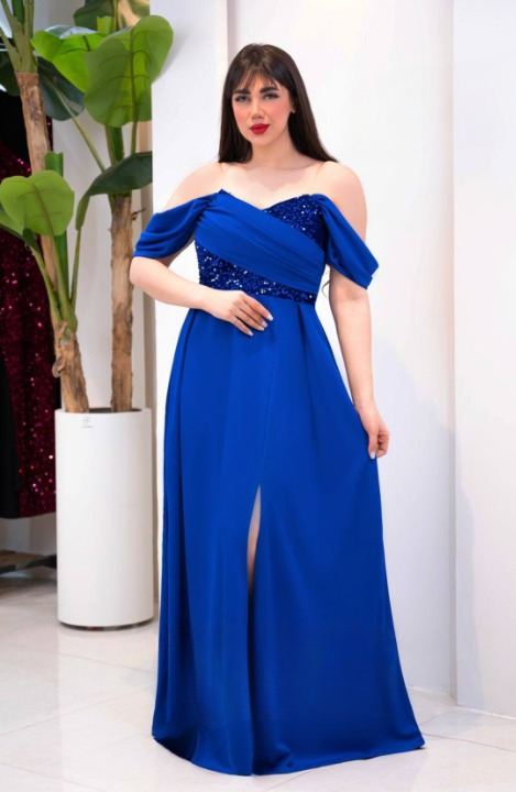 لباس مجلسی در طرحها و رنگهای جذاب و جنس کرپکش و پولک مخملی (قد۱۵۵/قد چاک۶۵)(زیپداره)(بند دکلته داره)