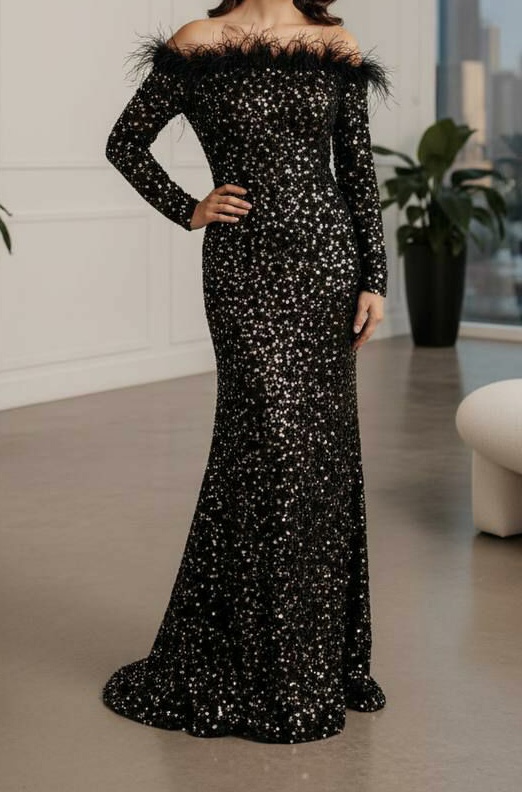 لباس مجلسی در چند رنگ متفاوت و زیبا با سایزهای متفاوت و از جنس کار تمام پولك مخمل تماما کار آستر کشی شده تزئين شده با پرهاي زيبا بهترین دوخت و پارچه کیفیت تضمینی