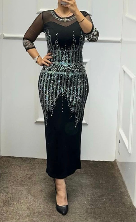 کرپ غواصی به همراه فول نگین حرارتی کیفیت عالی--قد١٣٠ -- ومروارید کار شده ،پشت کار زیپ دارد