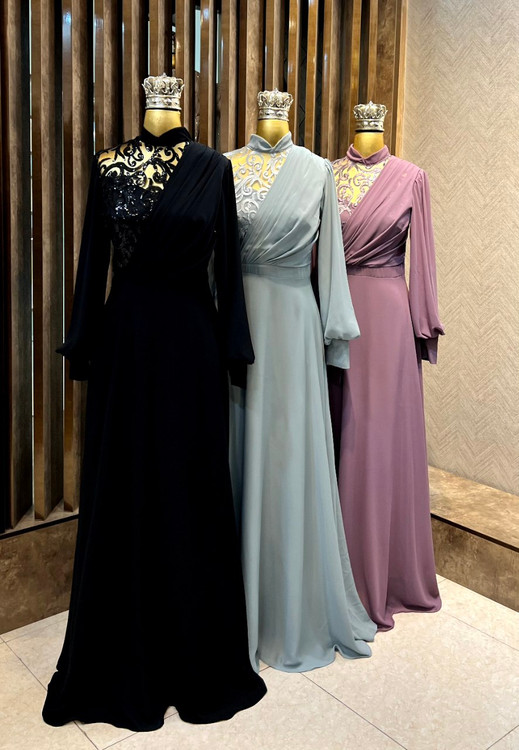 لباس مجلسی در چند رنگ متفاوت و زیبا با سایزهای متفاوت و از جنس بالاتنه حریر سوزن دوزی شده پولکی و دامن کرپ حریر دوخت و پارچه کیفیت تضمینی