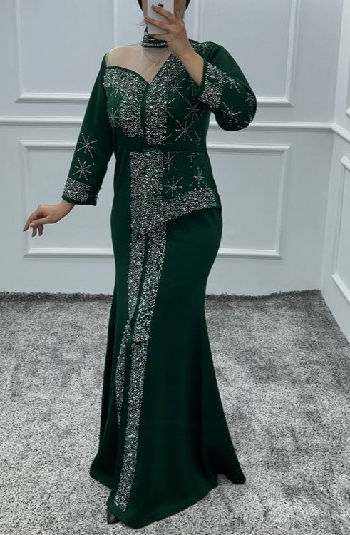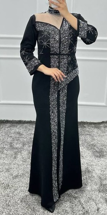لباس مجلسی در چند رنگ متفاوت و زیبا با سایزهای متفاوت و از جنس کرپ دالقیچ کش فول نگین حرارتی پشت لباس زیپ دارد (قد 155)