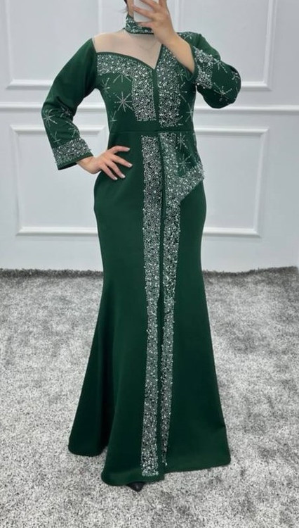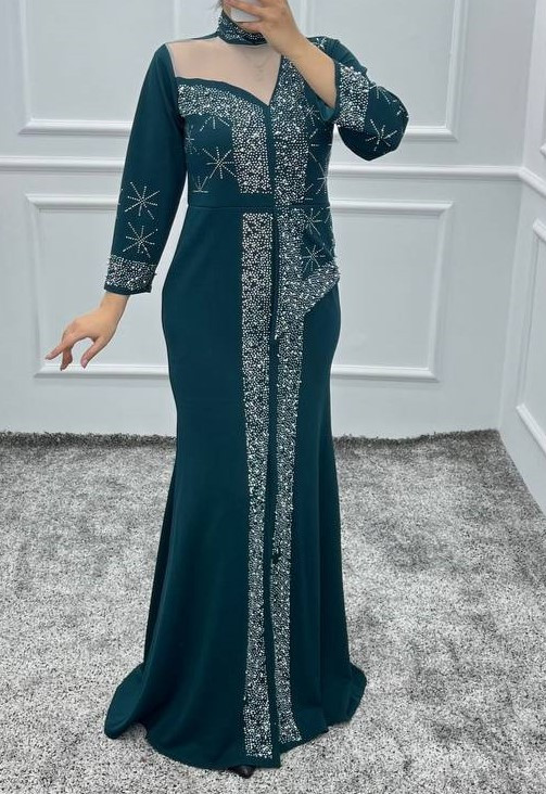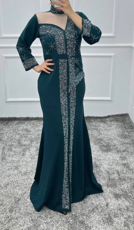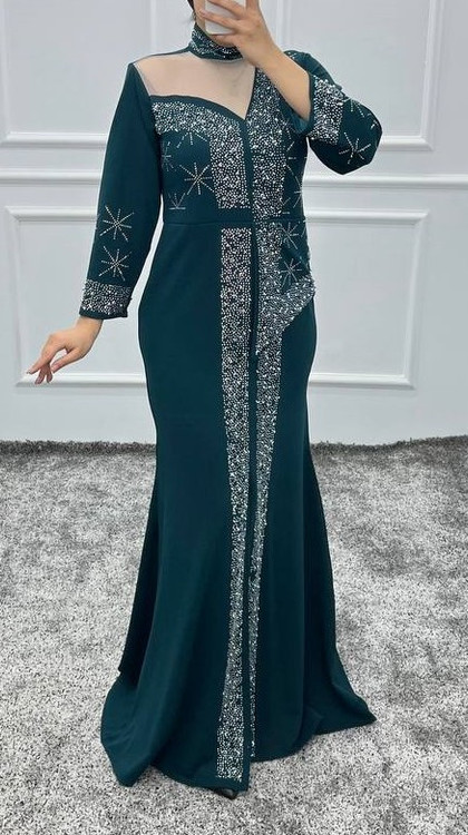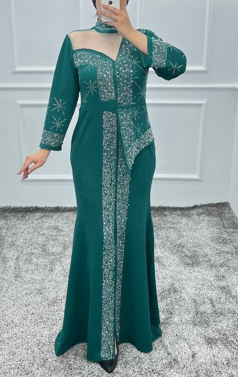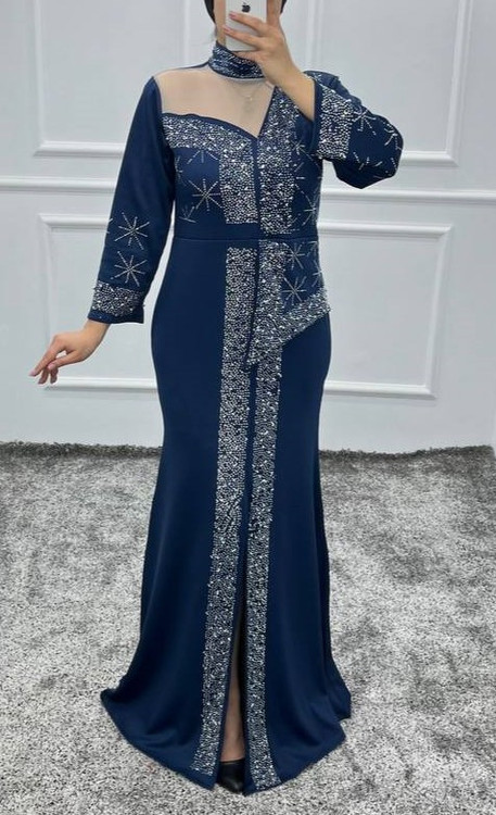لباس مجلسی در چند رنگ متفاوت و زیبا با سایزهای متفاوت و از جنسکرپ دالقیچ کش فول نگین حرارتی پشت لباس زیپ دارد (قد 155)