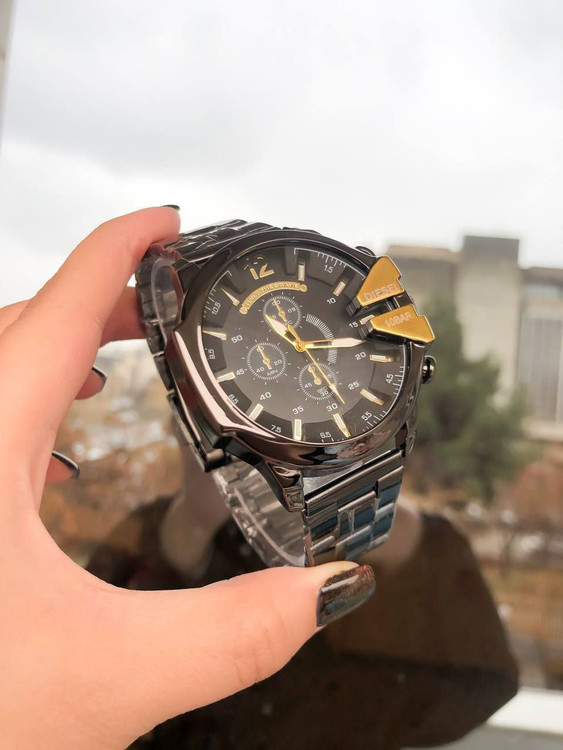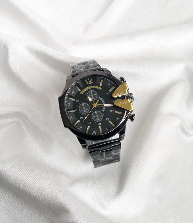 ساعت دیزل مردانه بنداستیل مشکی صفحه مشکی شاخ دار🫎 طلایی