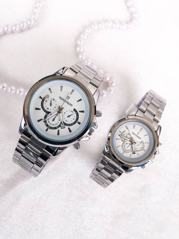 ست ساعت زنانه و مردانه مارک رومانسون بنداستیل نقره‌ای کد 369392