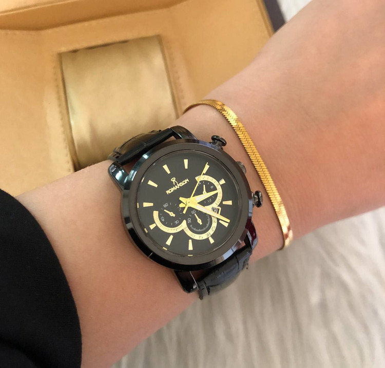 ساعت زنانه بندچرم مشکی صفحه مشکی مارک رومانسون