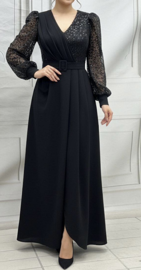 لباس مجلسی در چند رنگ متفاوت و زیبا با سایزهای متفاوت و از جنس کرپ دالقیچ و پولک -- قد۱۵۰