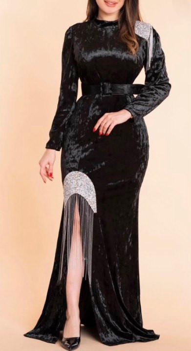 لباس مجلسی در چند رنگ متفاوت و زیبا با سایزهای متفاوت و از جنس مخمل-- قد ١۵٠-- کمربند ندارد