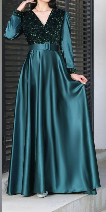پولک مخمل با ساتن همراه با کمربند با بهترین کیفیت و دوخت