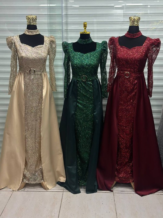 لباس مجلسی در چند رنگ متفاوت و زیبا با سایزهای متفاوت و ازجنس شاین و ساتن آمریکایی -- قد ۱۵۵ . کمربند دارد گلو بند دارد