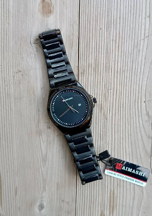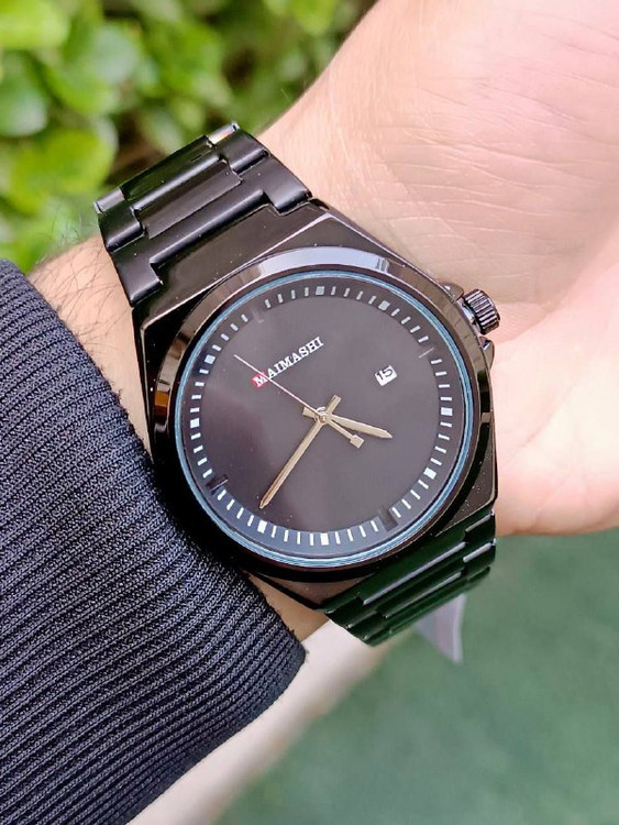 ساعت مچی مردانه صفحه بزرگ گرد بند مشکی برند maimashi