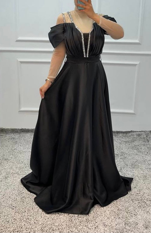 لباس مجلسی در چند رنگ متفاوت و زیبا با سایزهای متفاوت وجنس ساتن آمریکایی نوارمغزی نگیندار-- قد 155