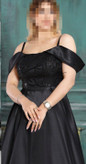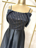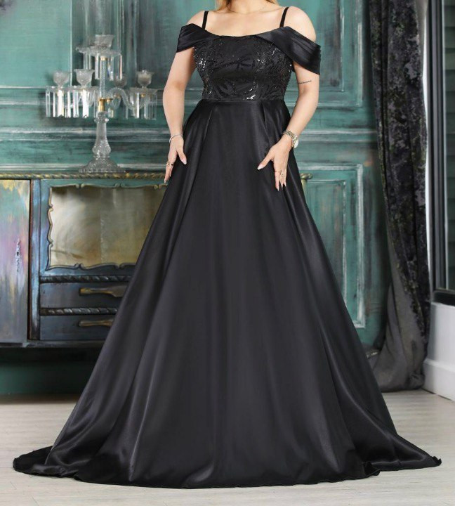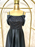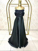 حریر پولک کاری و ساتن (قد۱۶۵)(بند دکلته داره) (پشت هم زیپ داره و هم بند)(زیر بند قاپک داره و بدن نما نیست)