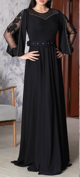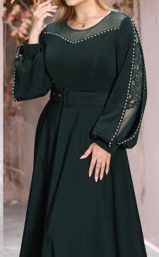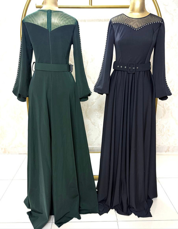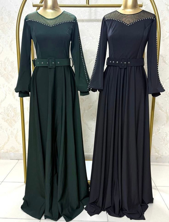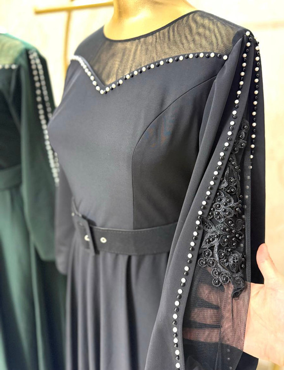 پارچه قواصی گرم بالا تزیین شده با مروارید و گیپور دست هنراه با کمربند