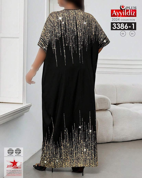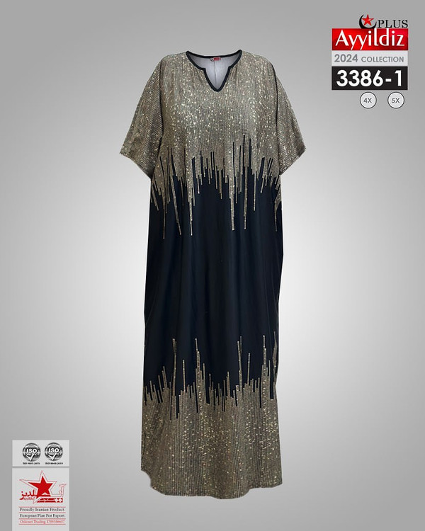 کد 3375 پیراهن مجلسی نخی بیگ سایز آی یلدیز دوخت و کیفیت تضمینی تنخور عالی پولکی نمیباشد چاپ هستش سایز 4 مناسب 44 تا 48 سایز 5 مناسب 50تا 56 جنس نخی سوپر لاکرا اعلا رنگ : مشکی ارسال فوری