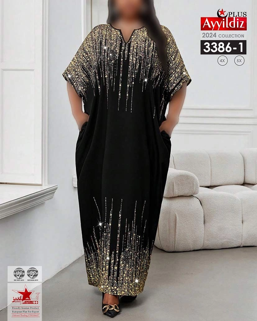 کد 3375 پیراهن مجلسی نخی بیگ سایز آی یلدیز دوخت و کیفیت تضمینی تنخور عالی پولکی نمیباشد چاپ هستش سایز 4 مناسب 44 تا 48 سایز 5 مناسب 50تا 56 جنس نخی سوپر لاکرا اعلا رنگ : مشکی ارسال فوری