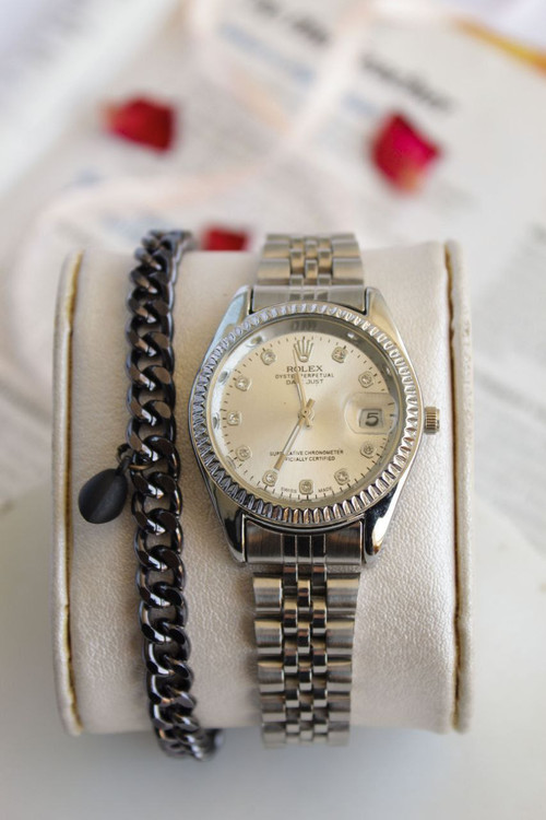 ساعت رولکس زنانه بندنقره ای صفحه نقره ای