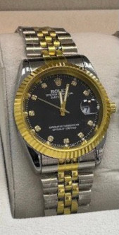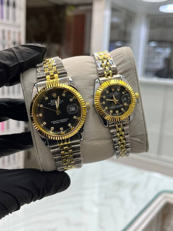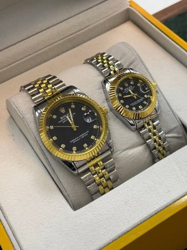 ست ساعت رولکس بنداستیل دورنگ صفحه مشکی.