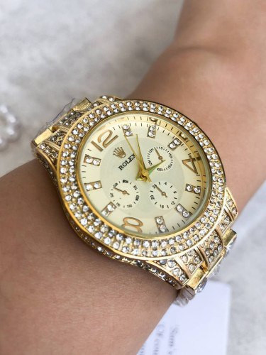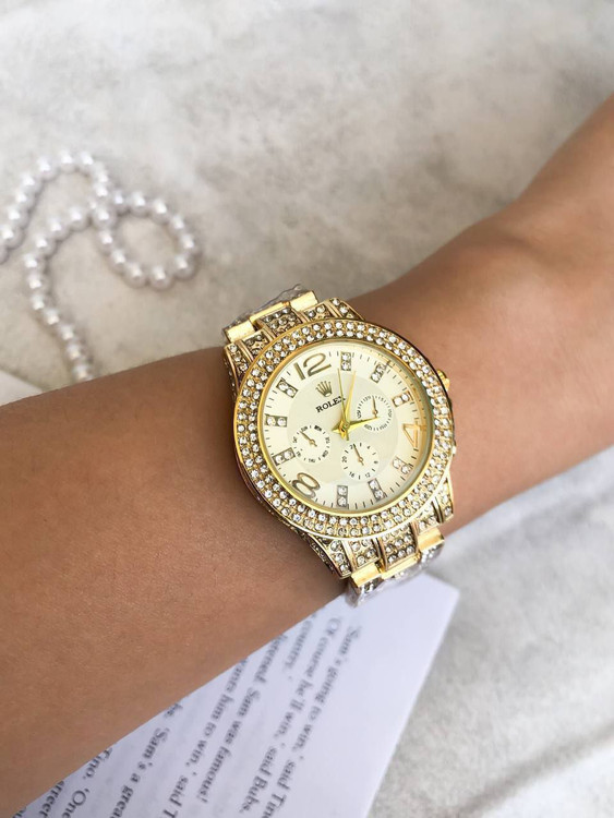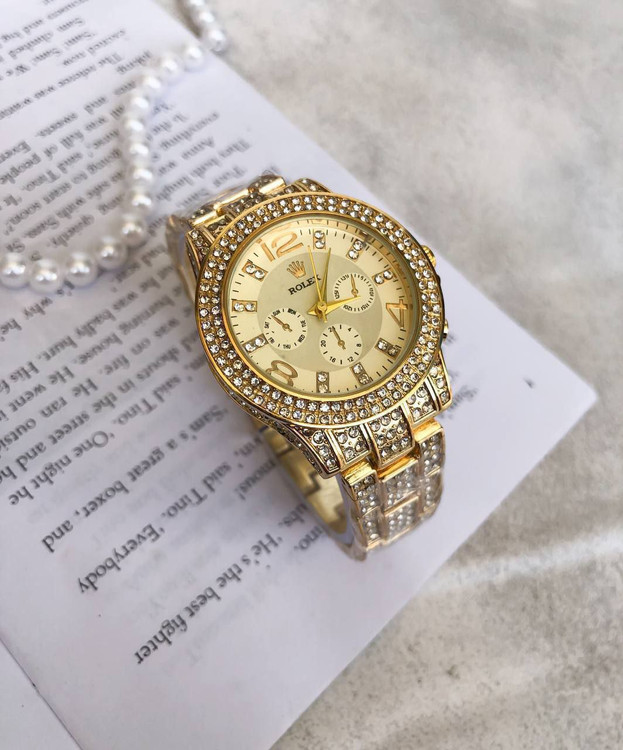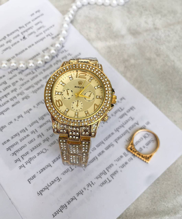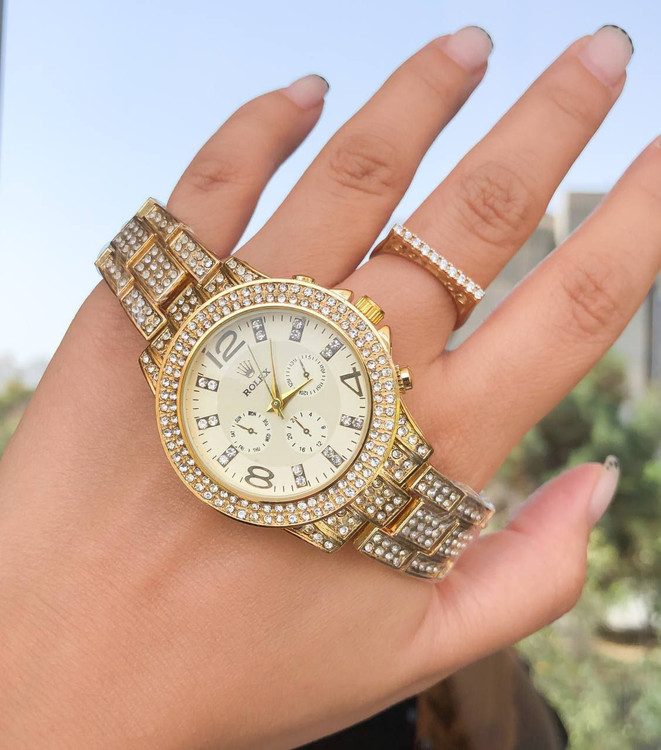 ساعت رولکس نگین دار طلایی همراه با انگشتر