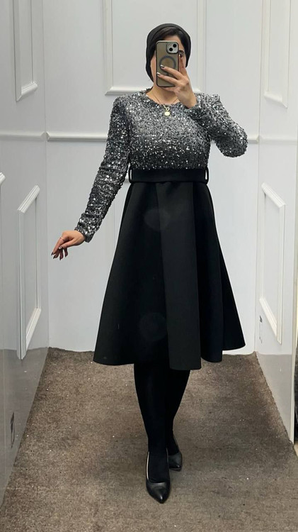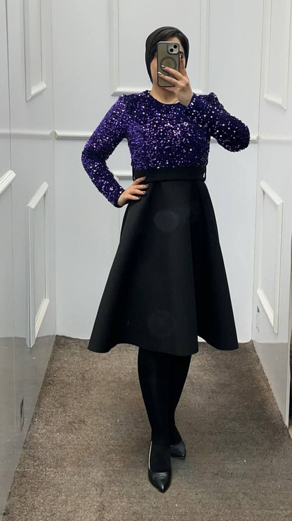 پولک مخمل دامن غواصی-- کمربند پارچه ای-- ساندویچی-- قد ١۵٠