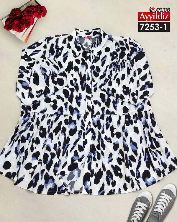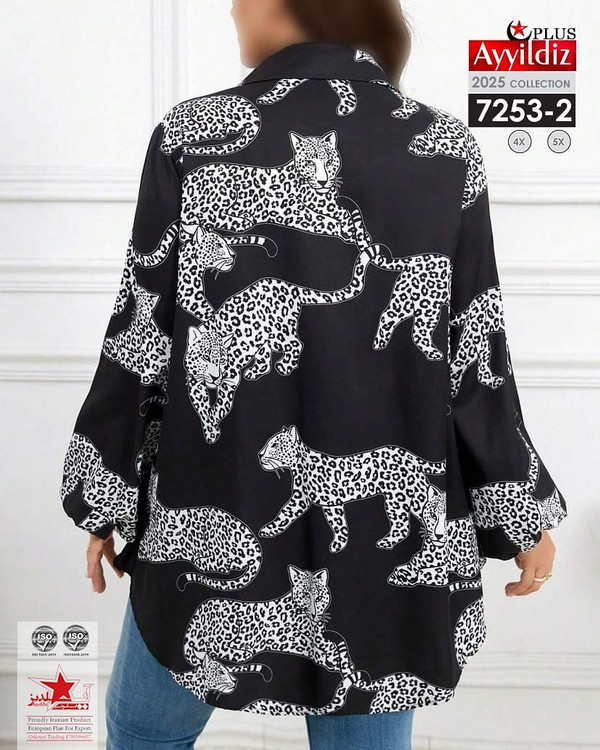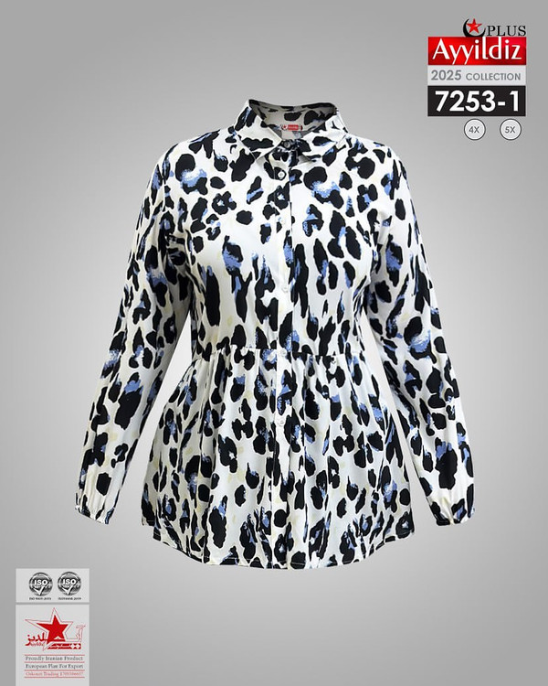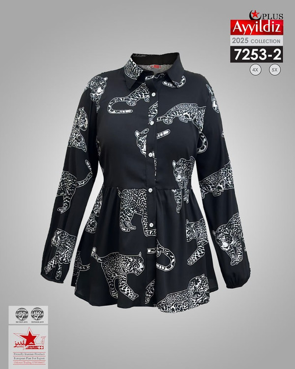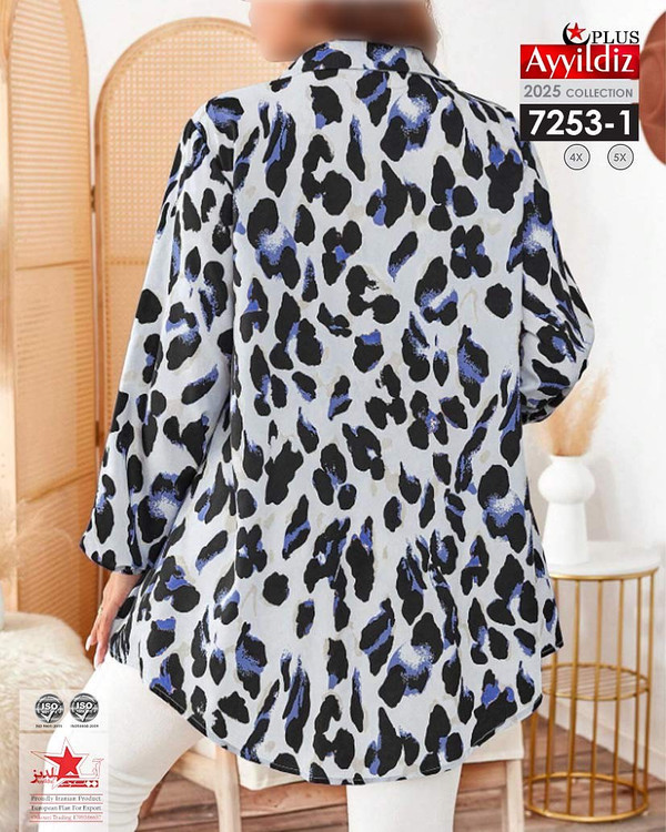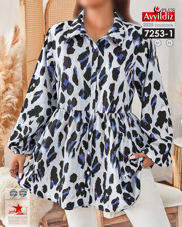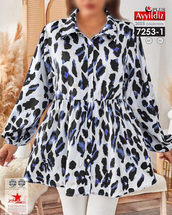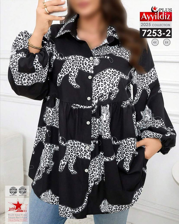 کد 7253 شومیز مجلسی بیگ سایز آییلدیز دوخت و کیفیت تضمینی تنخور عالی سایز 4 مناسب 44 تا 48 سایز 5 مناسب 50 تا 56 جنس کرپ حریر اعلا رنگ : آبی و مشکی ارسال فوری