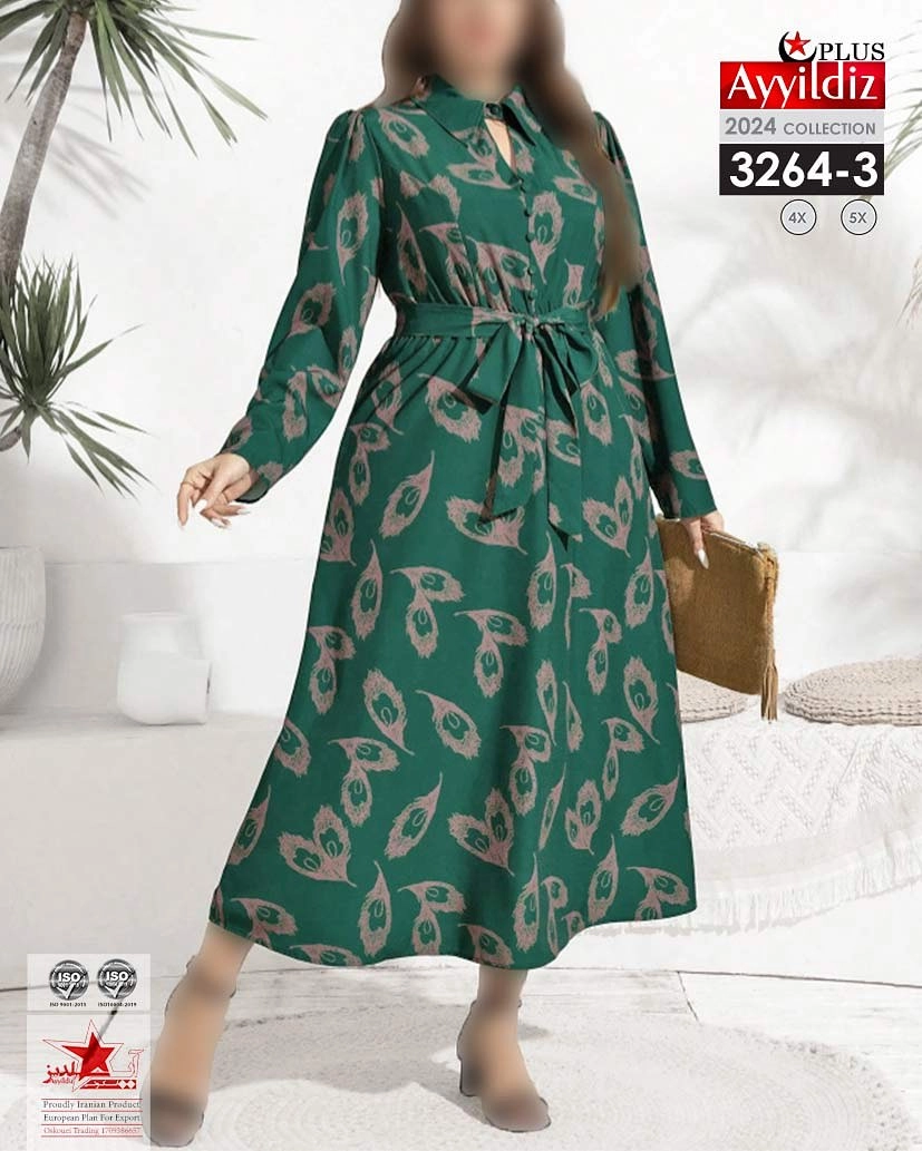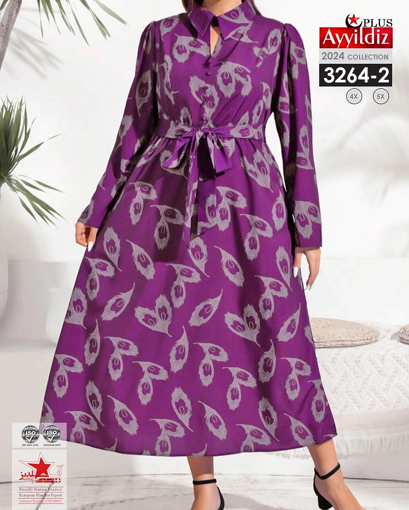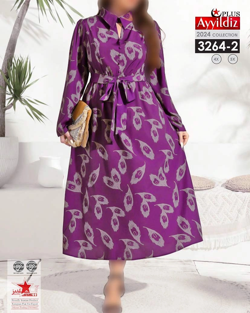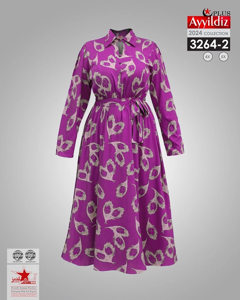 کد 3264 پیراهن مجلسی بیگ سایز آی یلدیز دوخت و کیفیت تضمینی تنخور عالی سایز 4 مناسب 44 تا 48 سایز 5 مناسب 50تا 56 جنس کرپ حریر فرانسه اعلا رنگ : آبی بنفش سبز ارسال فوری