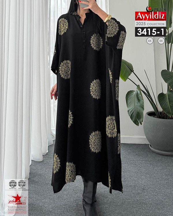 کد 3415 مانتو عبایی جلو بسته بیگ سایز آی یلدیز دوخت و کیفیت تضمینی تنخور عالی فری سایز مناسب 46 تا 58 جنس کرپ حریر فرانسه رنگ : مشکی و کرمی ارسال فوری