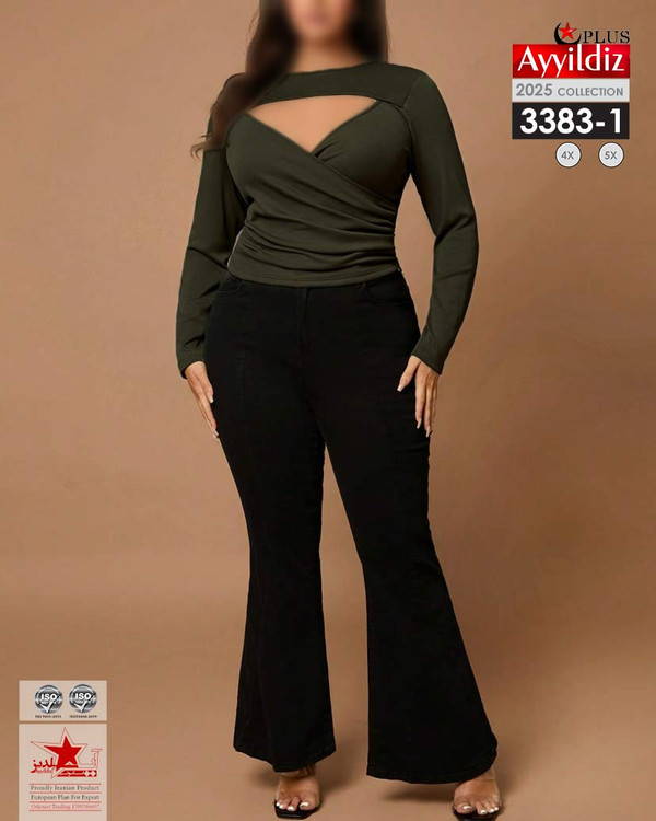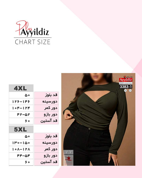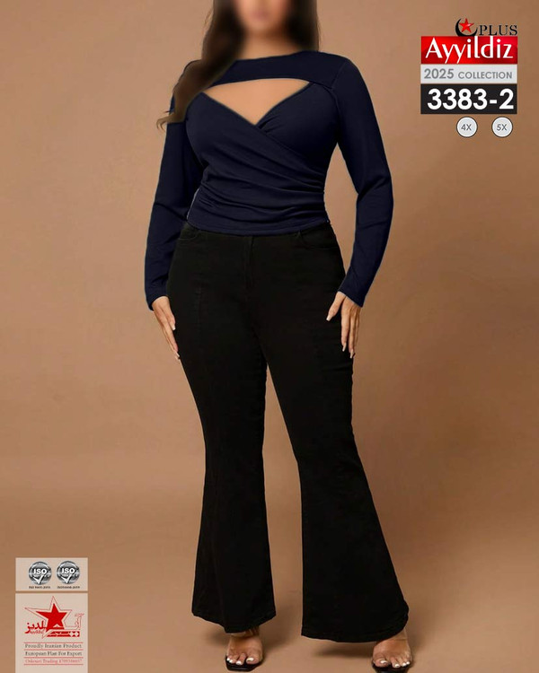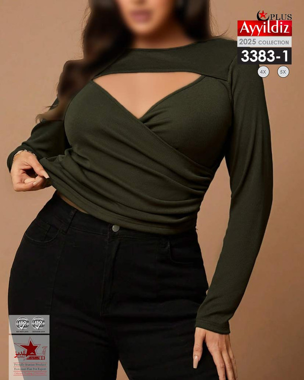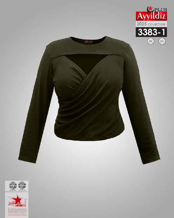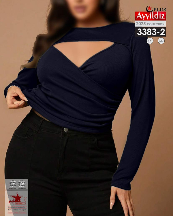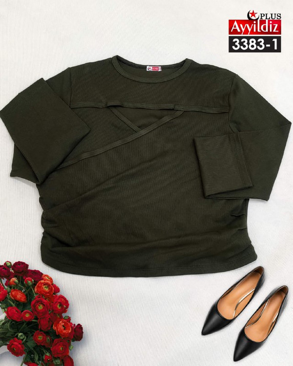 بلوز یقه دلبری اسپورت سایز بزرگ آییلدیز