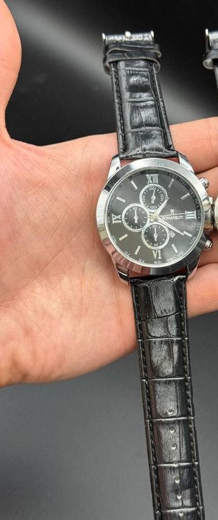 بندچرم مشکی صفحه مشکی قاب نقره ای. طرح سه موتوره
