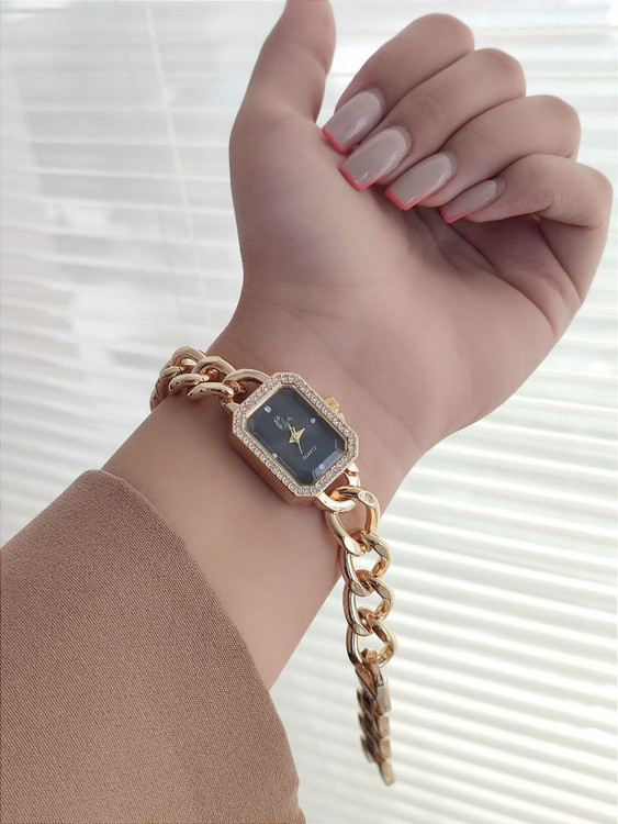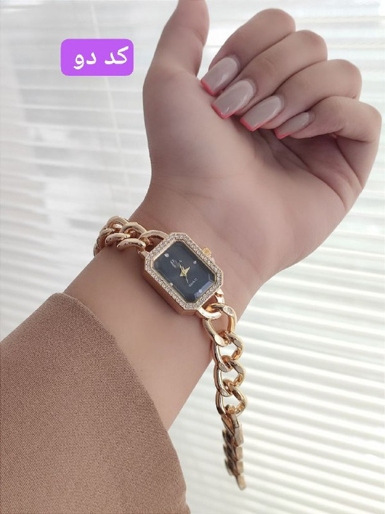 ساعت زنانه قاب دور نگین کار شده مدل زنجیری کارتیر کد 41107