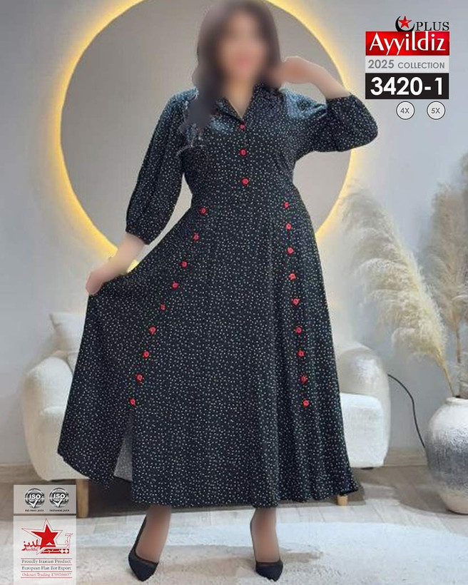 کد 3420 پیراهن مجلسی بیگ سایز آی یلدیز دوخت و کیفیت تضمینی تنخور عالی سایز 4 مناسب 44 تا 48 سایز 5 مناسب 50تا 56 جنس کرپ بوگاتی اعلا رنگ : تصویر کاتالوگ ارسال فوری
