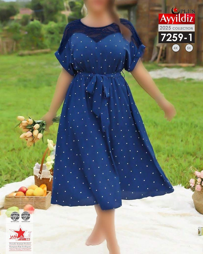 کد 7259 پیراهن مجلسی نخی بیگ سایز آی یلدیز دوخت و کیفیت تضمینی تنخور عالی سایز 4 مناسب 44 تا 48 سایز 5 مناسب 50تا 56 جنس نخی سوپر سافت و گیپور اعلا رنگ : تصویر کاتالوگ ارسال فوری