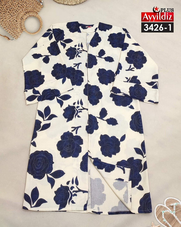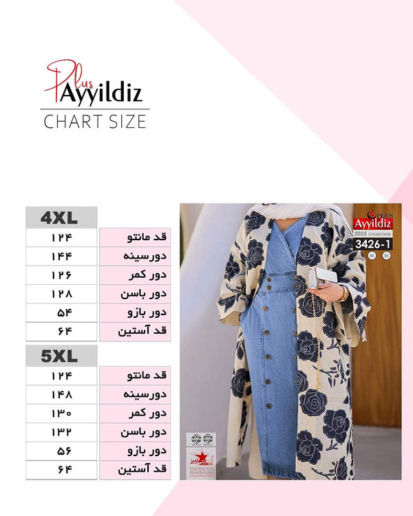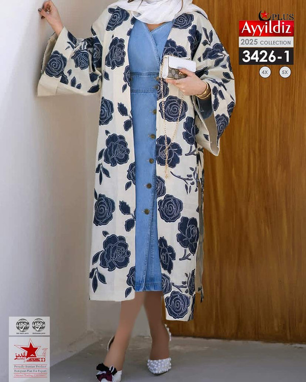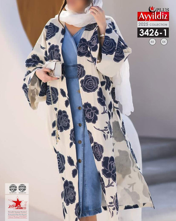 کد 3426 مانتو آزاد جلو باز بیگ سایز آییلدیز دوخت و کیفیت تضمینی تنخور عالی ۴ ایکس مناسب ۴۴ تا ۴۸ ۵ ایکس مناسب ۵۰ تا ۵۶ جنس شانتون چاپی اعلا رنگ : تصویر کاتالوگ ارسال فوری