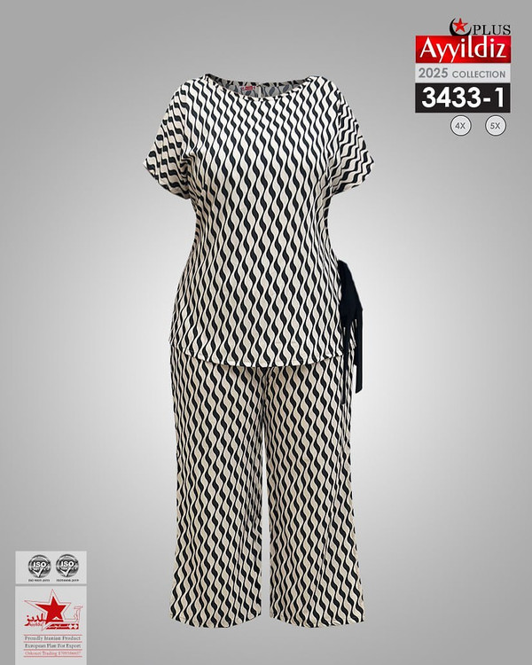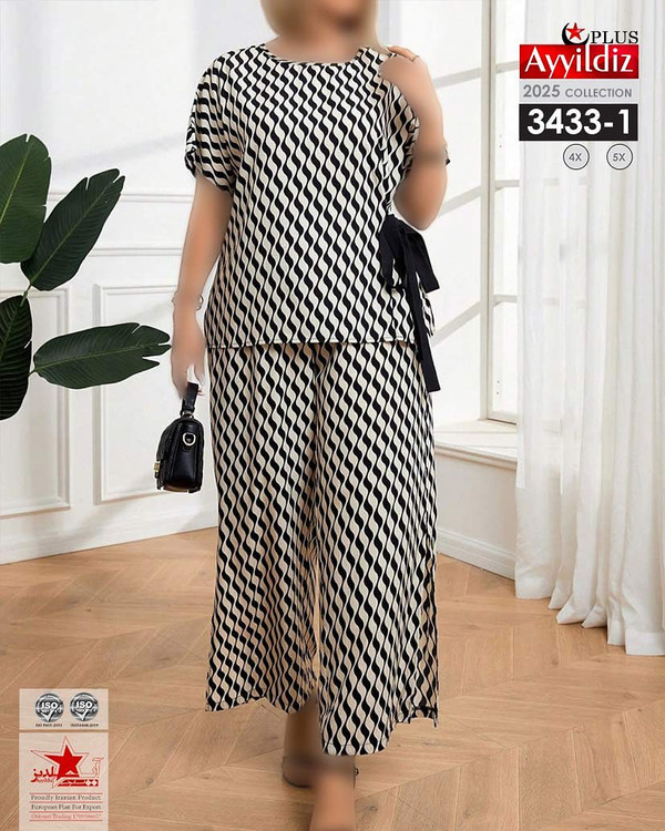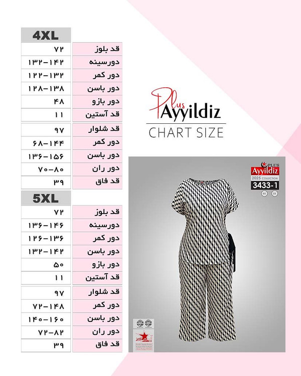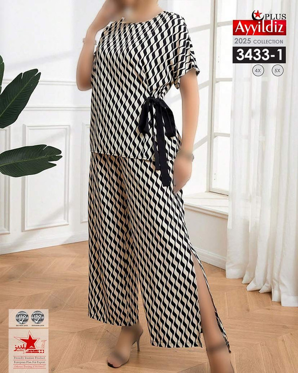 کد 3433 ست بلوز شلوار مجلسی سایز بزرگ آییلدیز دوخت و کیفیت تضمینی تنخور عالی سایز 4مناسب 44 تا 48 سایز 5 مناسب 50 تا 56 جنس کرپ حریر اعلا رنگ تصویر کاتالوگ ارسال فوری