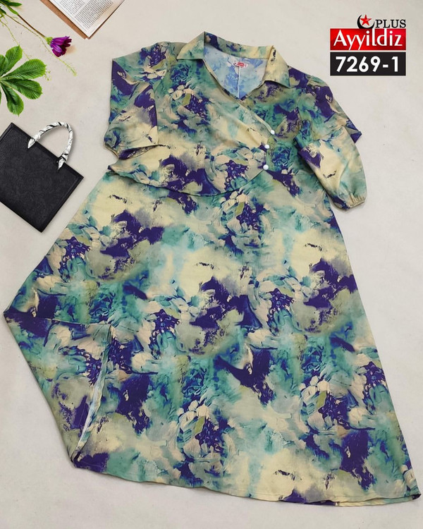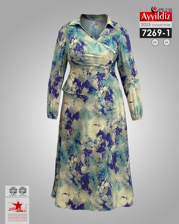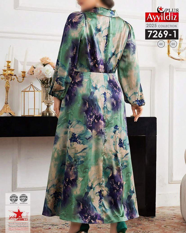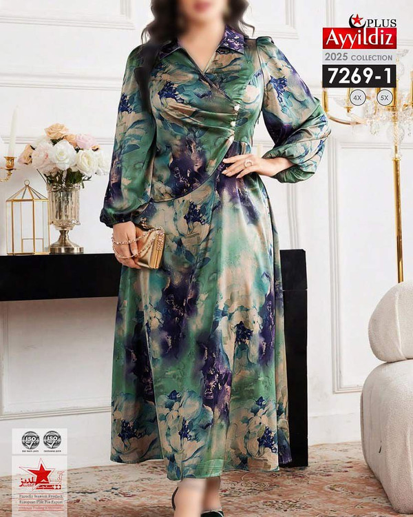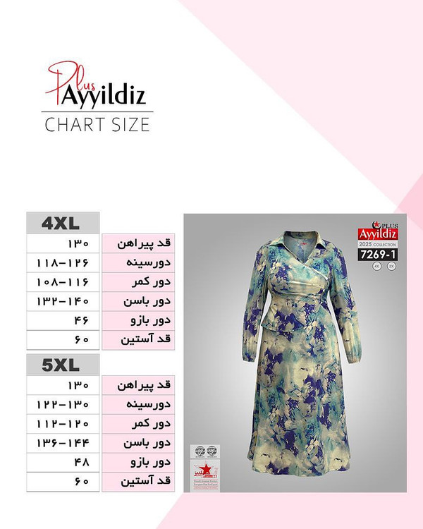 کد 7269 پیراهن مجلسی بیگ سایز آی یلدیز دوخت و کیفیت تضمینی تنخور عالی سایز 4 مناسب 44 تا 48 سایز 5 مناسب 50تا 56 جنس کرپ حریر فرانسه اعلا رنگ : تصویر کاتالوگ ارسال فوری