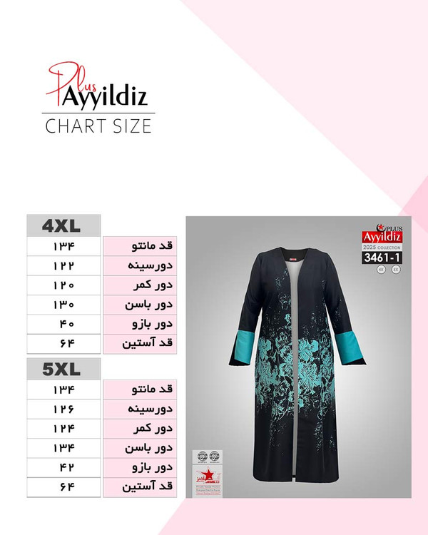 مانتو آزاد جلو باز زنانه شیک سایز بزرگ کد ۳۴۶1