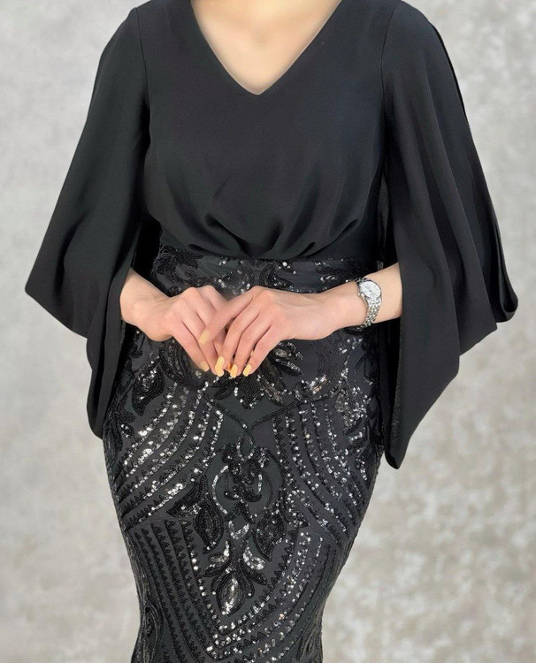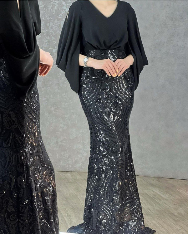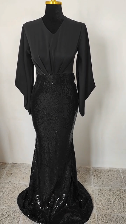فیلم کار موجود است--بالاتنه الیزه پایین تنه تور تماما پولک دوزی شده__پشت کار زیپ میخورد قد 160