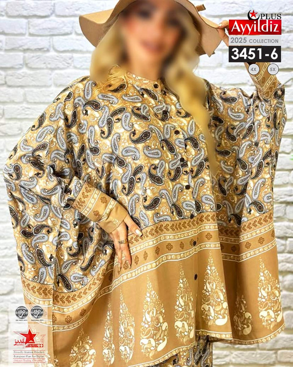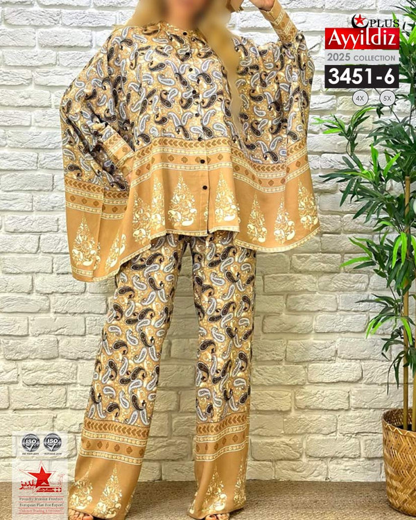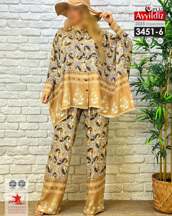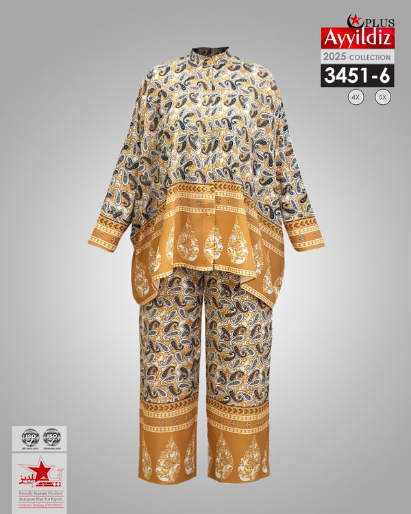کد 7287 ست بلوز شلوار مجلسی سایز بزرگ آییلدیز دوخت و کیفیت تضمینی تنخور عالی سایز 4مناسب 44 تا 48 سایز 5 مناسب 50 تا 56 جنس کرپ حریر اعلا رنگ زرد و قهوه ای ارسال فوری