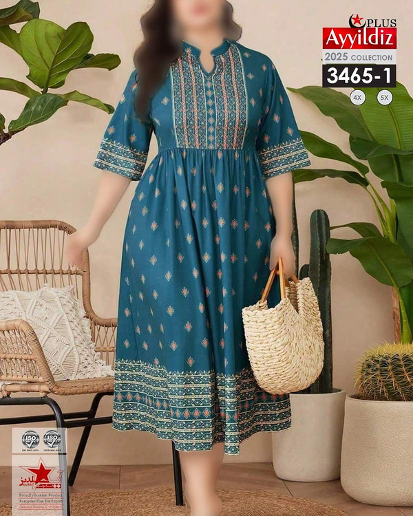 کد 3465 پیراهن خنک بیگ سایز آی یلدیز دوخت و کیفیت تضمینی تنخور عالی سایز 4 مناسب 44 تا 48 سایز 5 مناسب 50تا 56 جنس کرپ حریر اعلا رنگ : تصویر کاتالوگ ارسال فوری