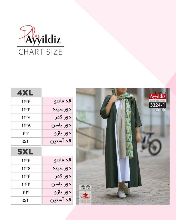 مانتو آزاد جلو باز زنانه سایز بزرگ کد ۳۳۲۴