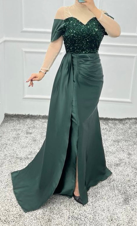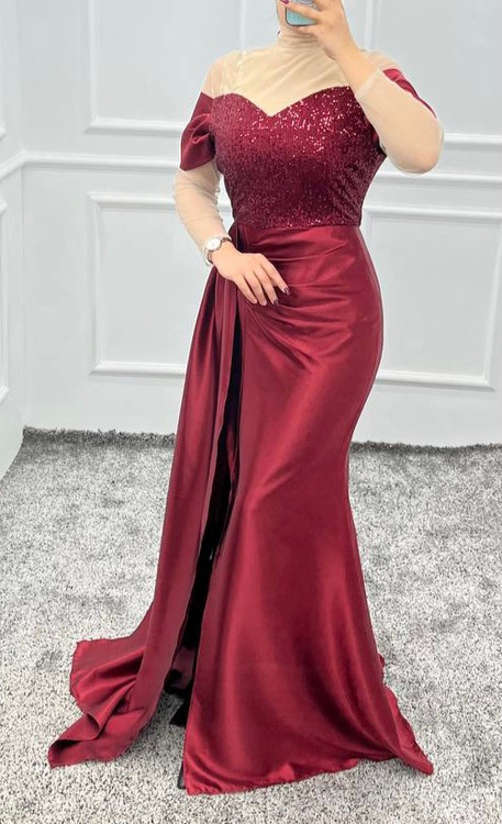 ساتن آمریکایی وپولک مخمل رنگ زرشکی پولک زارا -- قد ١۵۵- قد شال ١٣٠