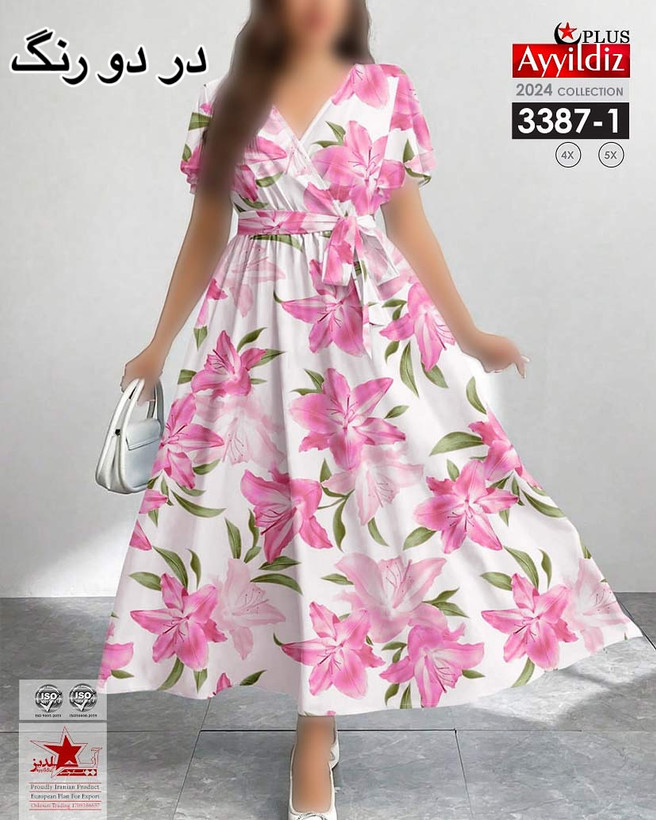 کد 3387 پیراهن مجلسی بیگ سایز آی یلدیز دوخت و کیفیت تضمینی تنخور عالی سایز 4 مناسب 44 تا 48 سایز 5 مناسب 50تا 56 جنس کرپ حریر فرانسه اعلا رنگ : صورتی و آبی ارسال ۵ روز پس از ثبت