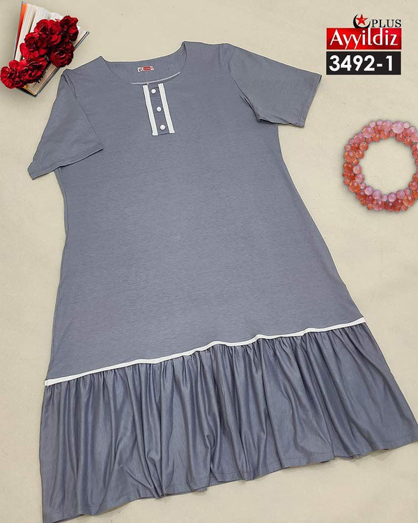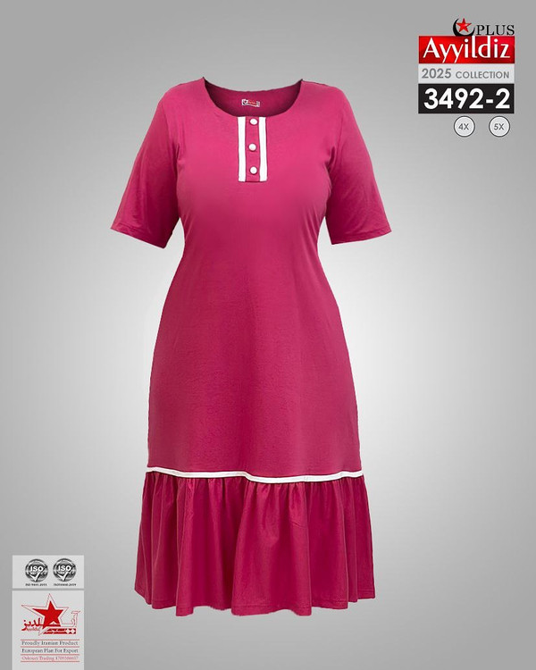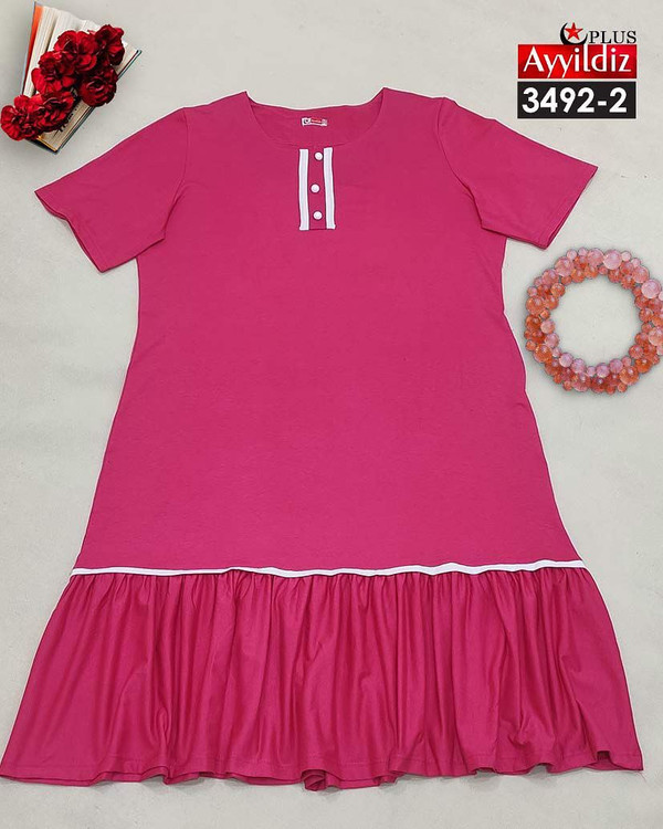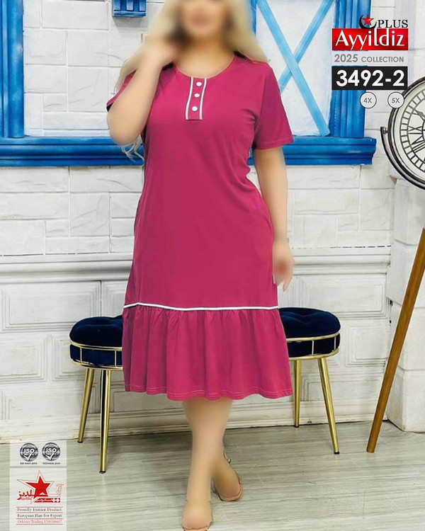 کد 3492 پیراهن راحتی بیگ سایز آی یلدیز دوخت و کیفیت تضمینی تنخور عالی سایز 4 مناسب 44 تا 48 سایز 5 مناسب 50تا 56 جنس نخ ویسکوز اعلا رنگ : سرخابی نفتی طوسی ارسال فوری