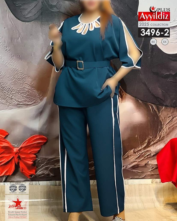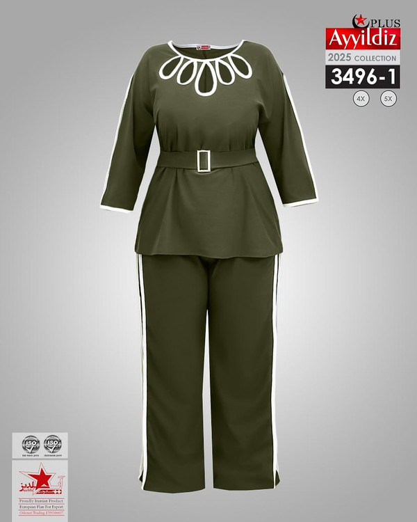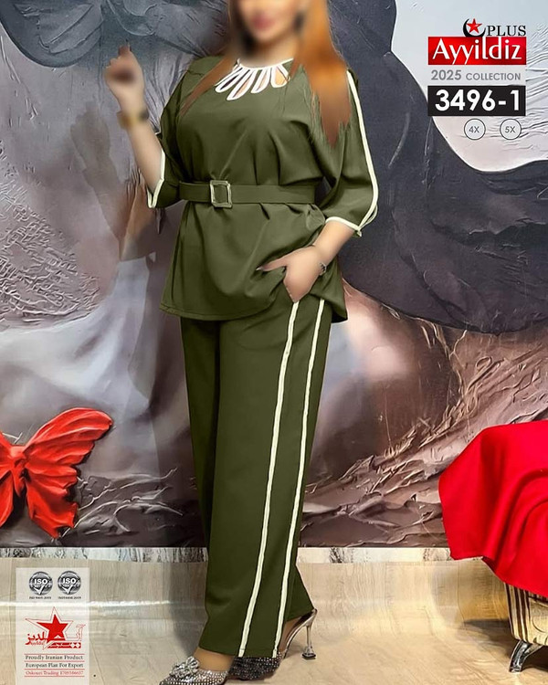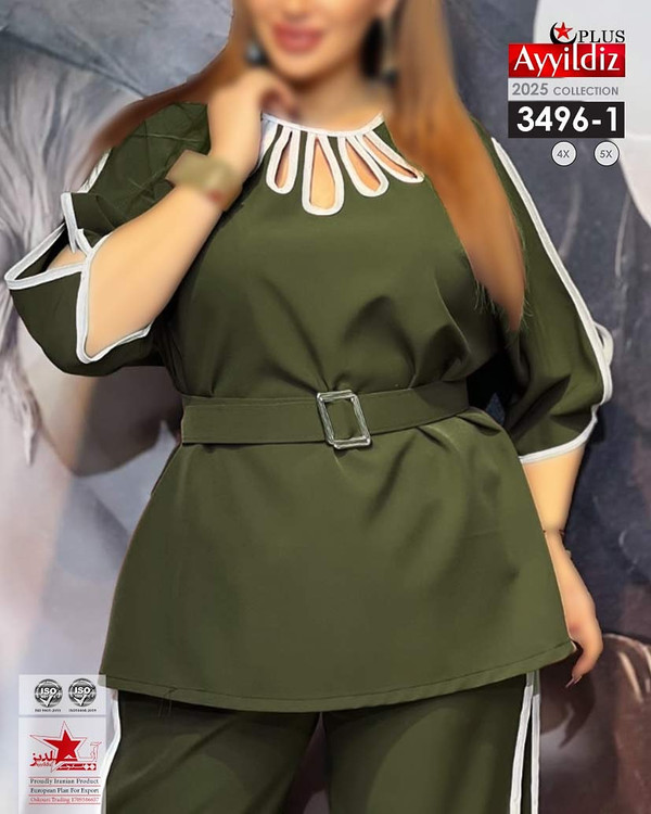 کد 3496 ست بلوز شلوار مجلسی اشکی سایز بزرگ آییلدیز دوخت و کیفیت تضمینی تنخور عالی سایز 4مناسب 44 تا 48 سایز 5 مناسب 50 تا 56 جنس کرپ کش اعلا رنگ سبز ارتشی و کله غازی ارسال فوری