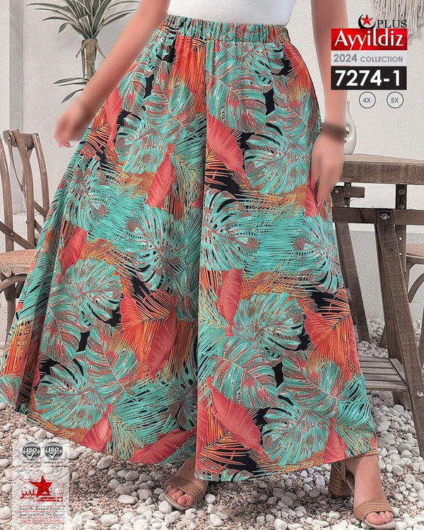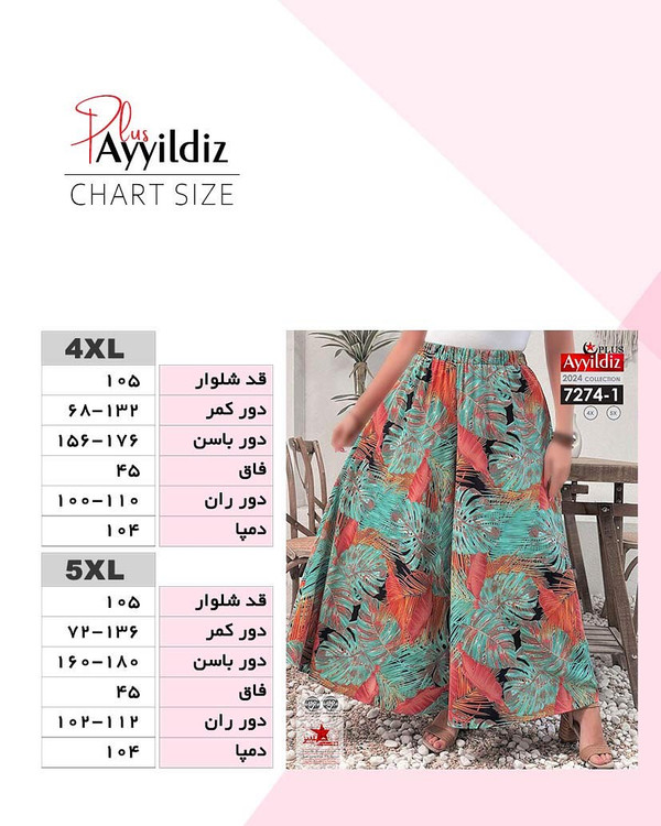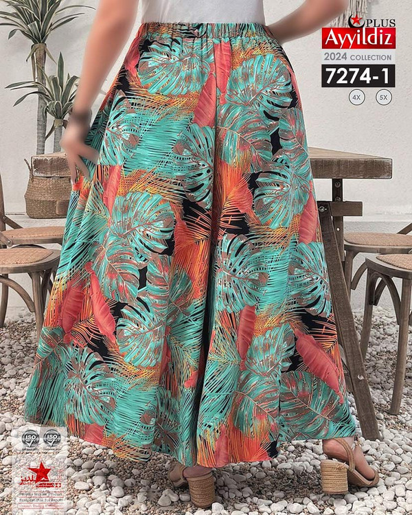 کد 7274 شلوار دامن شلواری بیگ سایز آییلدیز دوخت و کیفیت تضمینی تنخور عالی سایز 4 مناسب 44تا 48 سایز 5 مناسب 50تا 56 جنس کرپ کش اعلا رنگ : تصویر کاتالوگ ارسال فوری