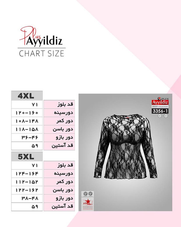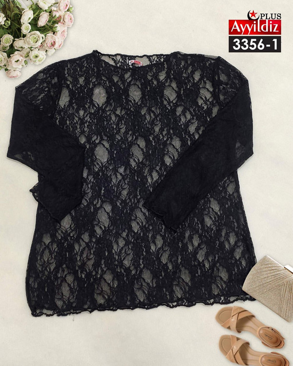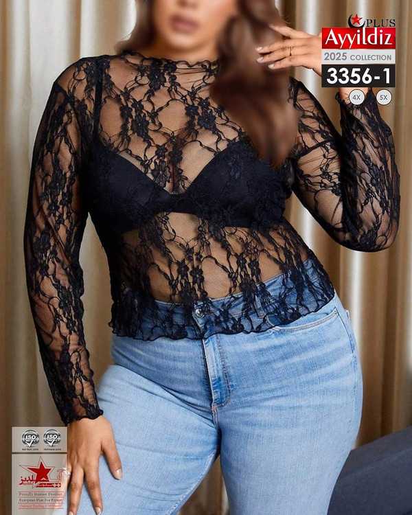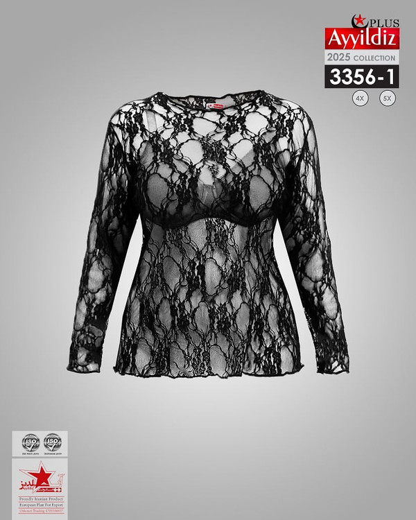 کد 3356 بلوز تمام گیپور سایز بزرگ آییلدیز دوخت و کیفیت تضمینی تنخور عالی سایز 4 مناسب ۴۴ تا ۴۸ سایز ۵ مناسب ۵۰ تا ۵۶ جنس گیپور اعلا رنگ مشکی ارسال فوری