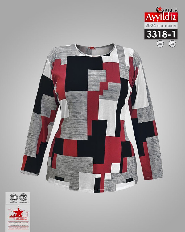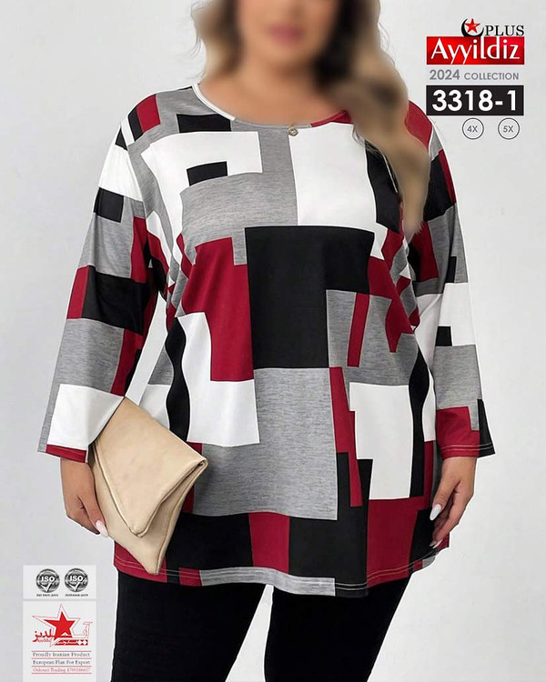 کد 3318 بلوز نخی آستین بلند سایز بزرگ آییلدیز دوخت و کیفیت تضمینی تنخور عالی سایز 4 مناسب ۴۴ تا ۴۸ سایز ۵ مناسب ۵۰ تا ۵۶ جنس نخی سوپر لاکرا اعلا رنگ تصویر کاتالوگ ارسال فوری