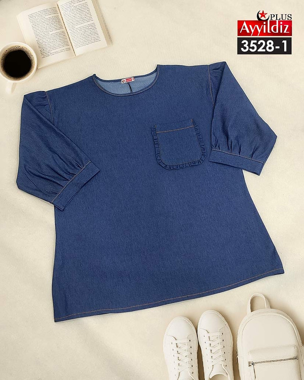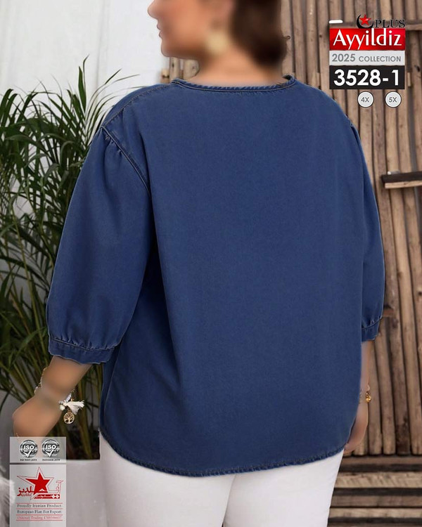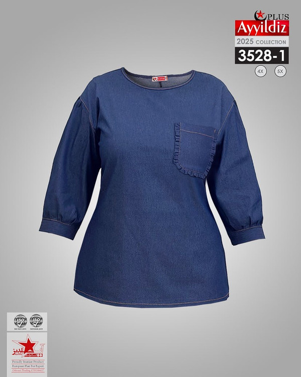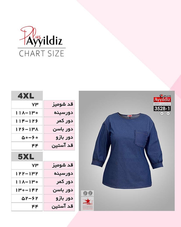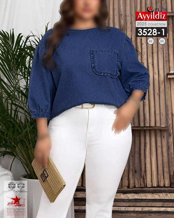 کد 3528 شومیز جین آسین دار بیگ سایز آییلدیز دوخت و کیفیت تضمینی تنخور عالی سایز 4 مناسب 44 تا 48 سایز 5 مناسب 50 تا 56 جنس لی شسته شده خنک اعلا رنگ : تصویر کاتالوگ ارسال فوری