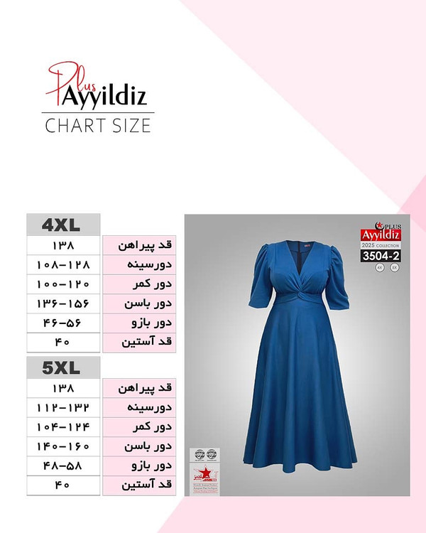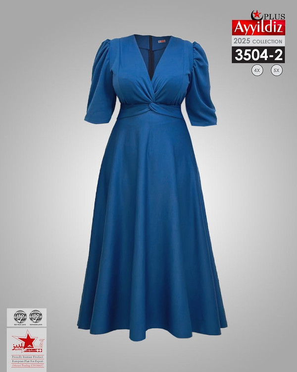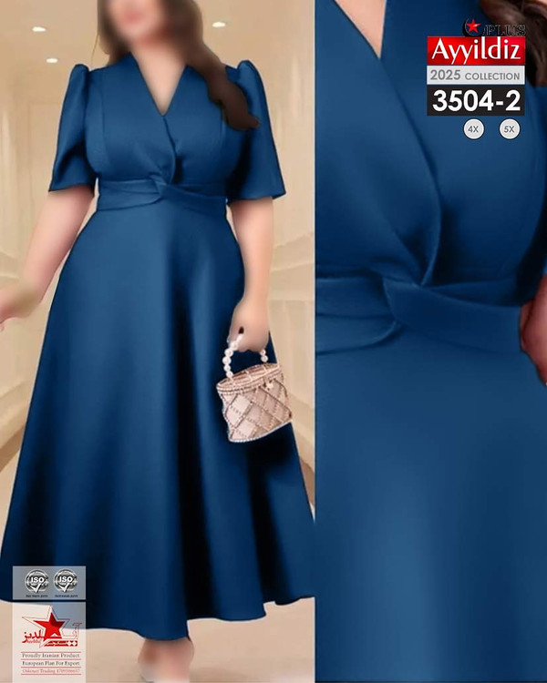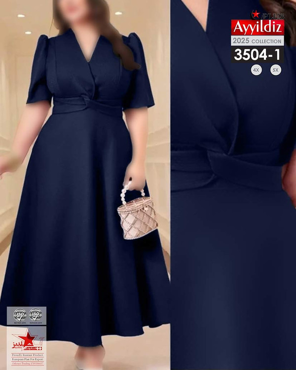 کد 3504 پیراهن مجلسی گرهی بیگ سایز آی یلدیز دوخت و کیفیت تضمینی تنخور سایز 4 مناسب 44 تا 48 سایز 5 مناسب 50تا 56 جنس کرپ جودون اعلا رنگ : کله غازی و سرمه ای ارسال فوری