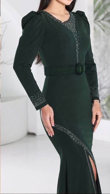 قواصی گرم بالا-- دیزاین با نگین های زیبای و مرواریدهای پانچ شده-- کمربند دارد-- پشت کار زیپ دارد